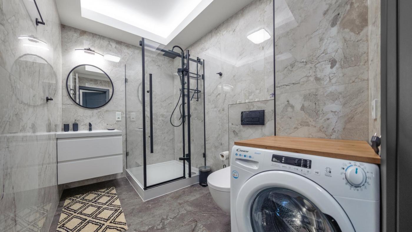 Apartament z 2 sypialniami. This apartment consists of 1 living room, 2 separate bedrooms and 1 bathroom with a shower and a hairdryer. The well-equipped kitchenette features a stovetop, a refrigerator, a dishwasher and kitchenware. This apartment has a washing machine, a coffee machine, a flat-screen TV and a balcony. The unit offers 4 beds. Apartament - 6 osobowy. Powierzchnia pokoju ok.: 54 mkw.