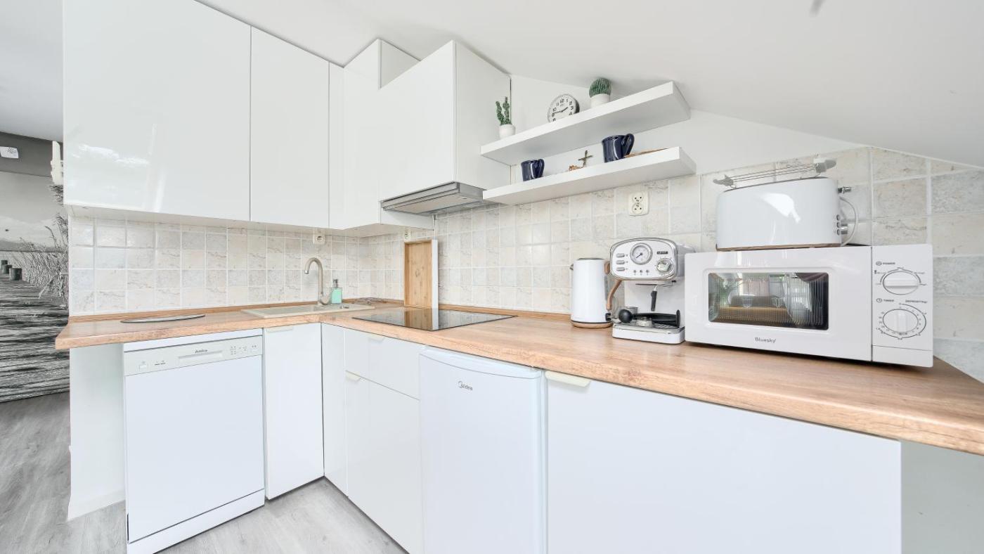 Oferta apartamentu obejmuje sypialnię (1), salon, aneks kuchenny z pełnym wyposażeniem, w tym lodówką i ekspresem do kawy, a także łazienkę (1) z prysznicem oraz suszarką do włosów. W apartamencie zapewniono ręczniki i pościel.