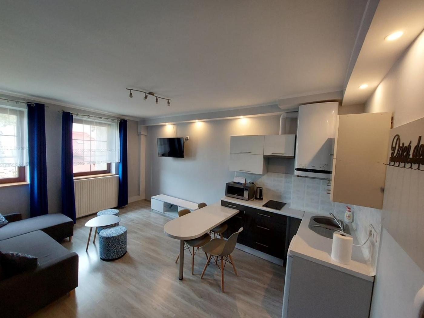 Apartament z 1 sypialnią. This apartment comprises 1 living room, 1 separate bedroom and 1 bathroom with a walk-in shower and a hairdryer. Meals can be prepared in the well-fitted kitchenette, which comes with a stovetop, a refrigerator, kitchenware and a microwave. The apartment provides a flat-screen TV, a dining area, a wardrobe, an electric kettle as well as garden views. The unit offers 3 beds. Apartament - 2 osobowy. Powierzchnia pokoju ok.: 30 mkw.
